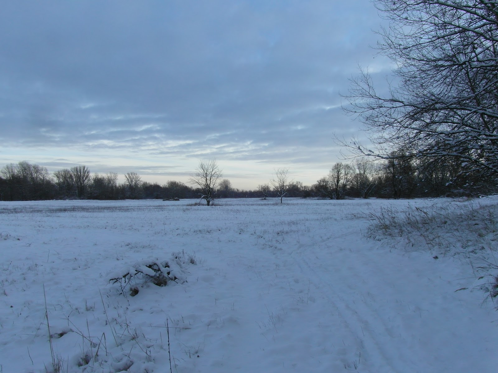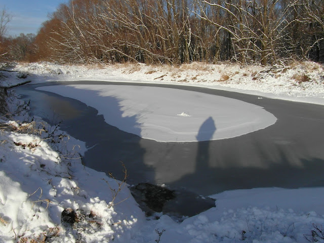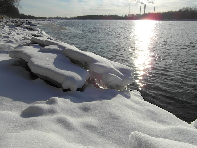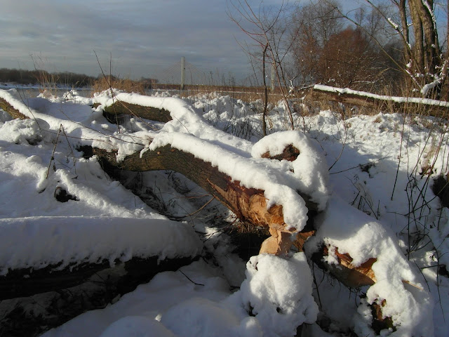 Spaceruję sobie brzegiem rzeki zachwycając się czystością świeżego śniegu.