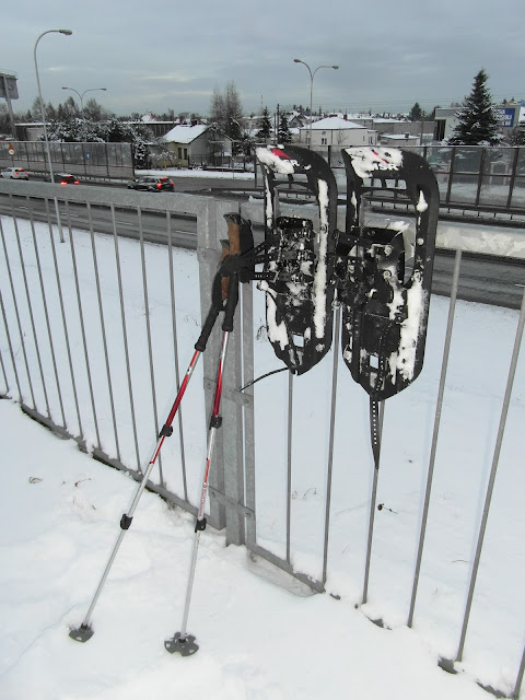 Śniegu nie jest zbyt wiele ale i tak poruszanie się na nim jest łatwiejsze na rakietach niż w butach.