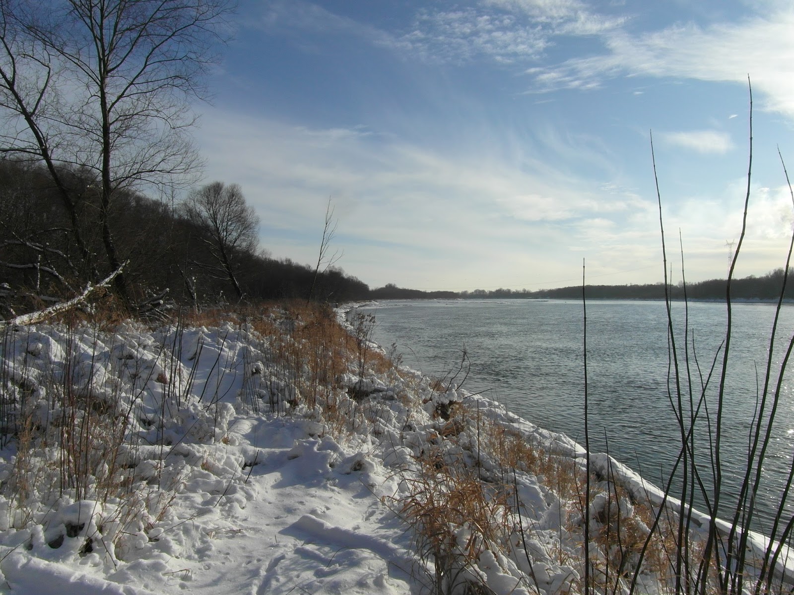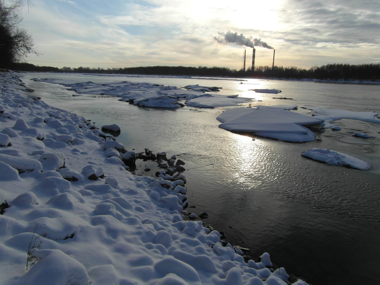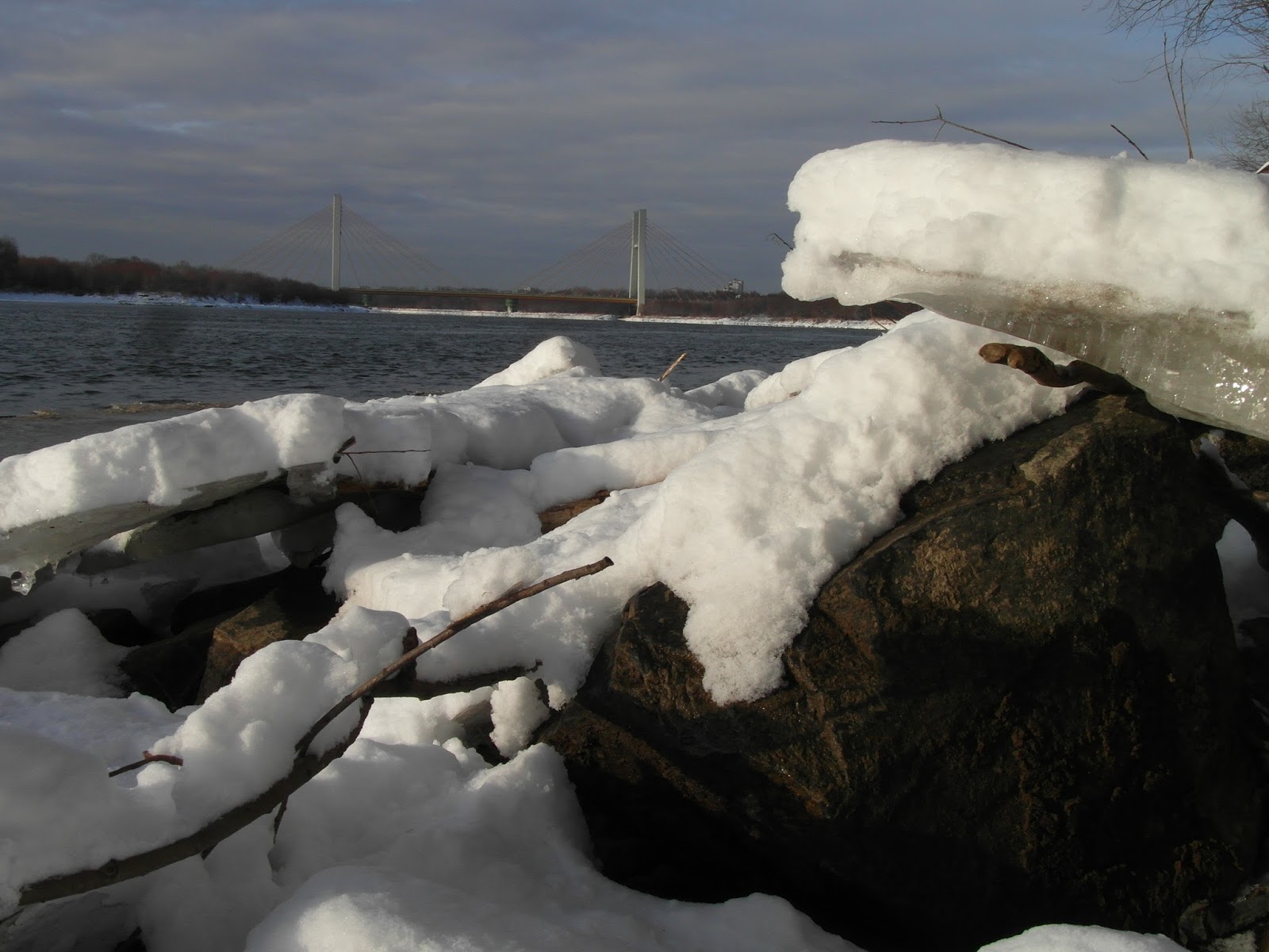 Spaceruję sobie brzegiem rzeki zachwycając się czystością świeżego śniegu.