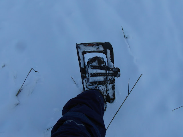 Śniegu nie jest zbyt wiele ale i tak poruszanie się na nim jest łatwiejsze na rakietach niż w butach.